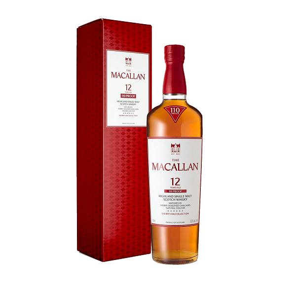 MACALLAN 12 YEAR – CASK STRENGTH 55% (110 PROOF) được đóng chai ở nồng độ 55% để tăng cường và làm nổi bật đặc trưng của rượu whisky ủ trong thùng gỗ sồi Sherry 12 năm tuổi. Macallan 110 Proof mở ra nhiều tầng hương vị, mời gọi sự thưởng thức sâu sắc hơn.